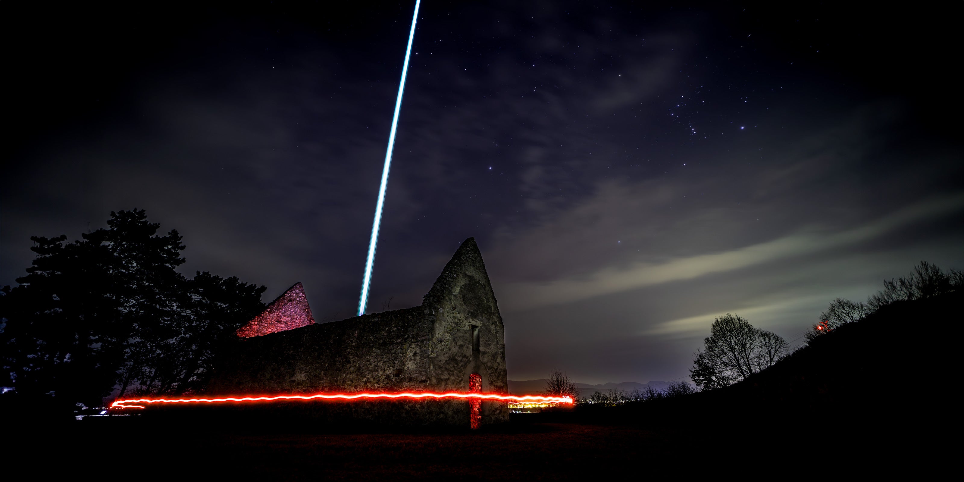 Extremely luminous sky lasers suitable for landmark illumination and architecture.
