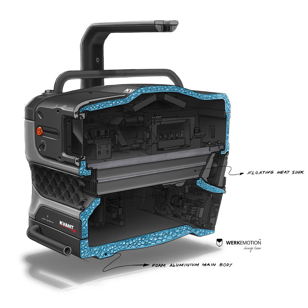 The heatsink is mounted in the chassis via a flexible seal. It reduce vibrations and allows the heatsink to overcome heat expansion without the risk of deformation, which often leads to colour misalignment.